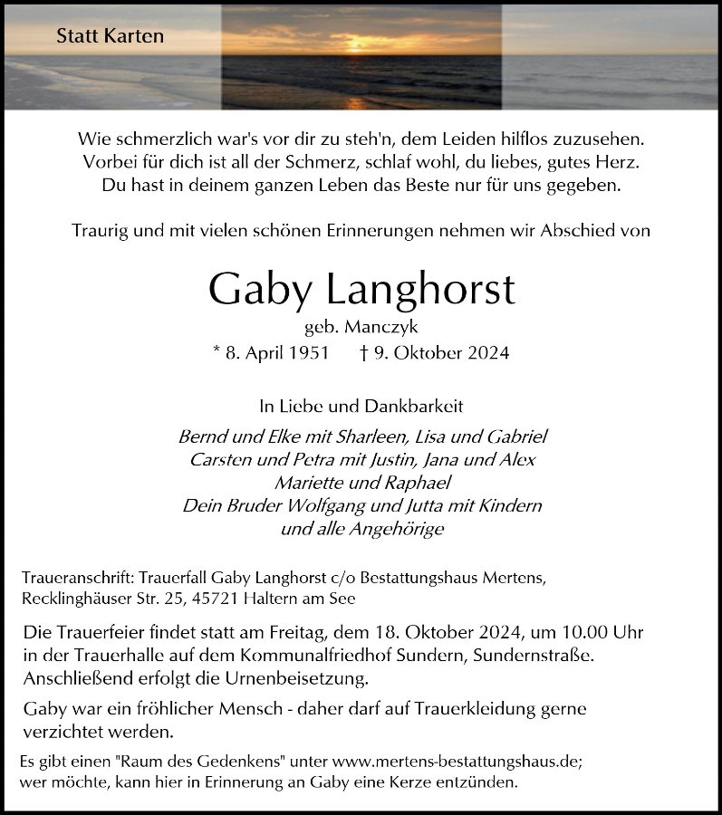 Gabriele Langhorstgestorben am 9. Oktober 2024