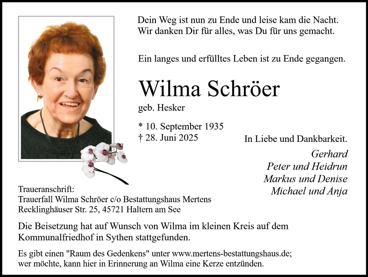 wir möchten unser tiefes Mitgefühl zum Tod von Wilma Schröer aussprechen.